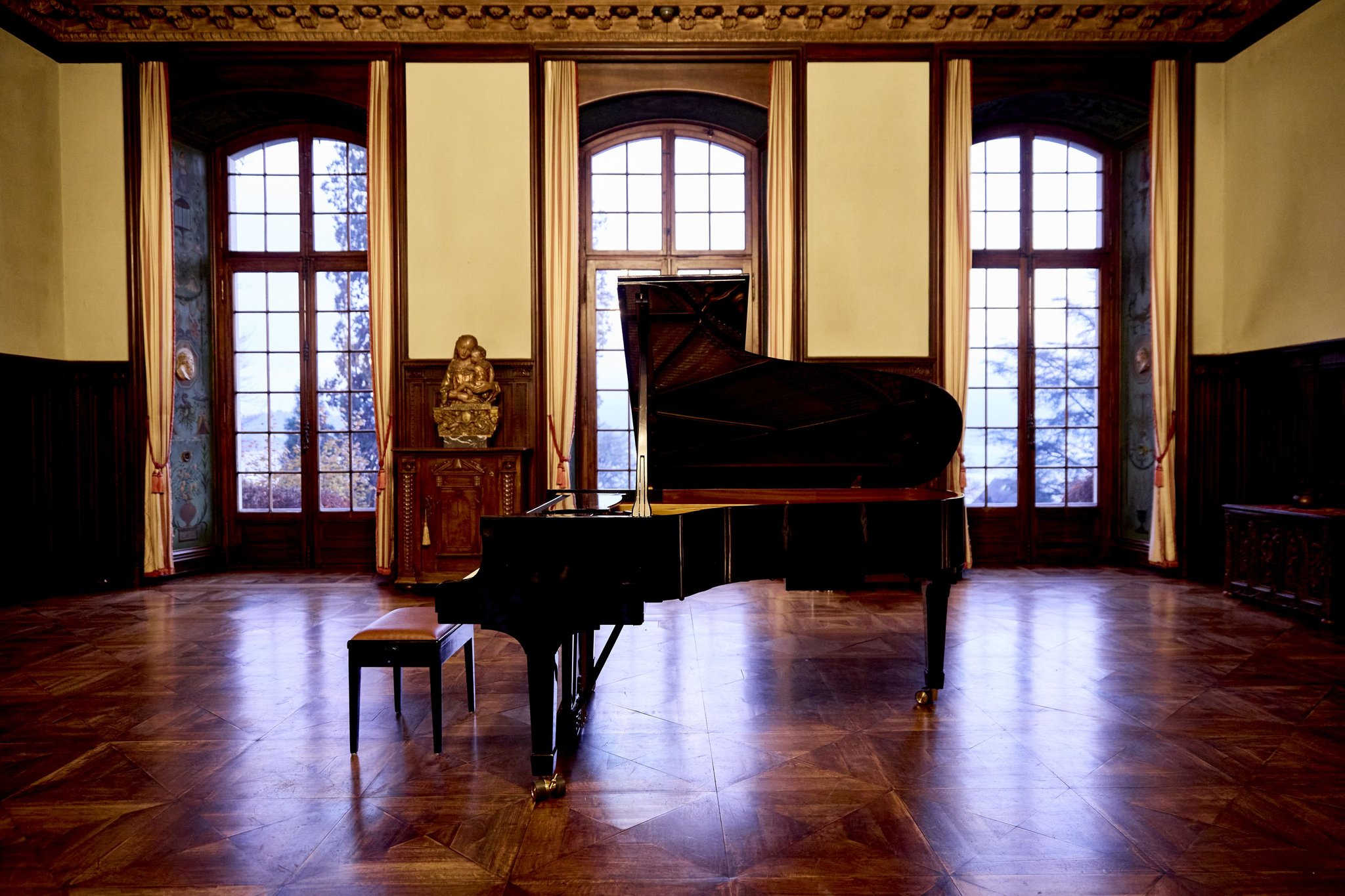 Die Klavierschülerinnen und - Schüler von Toni Goldener spielen auf dem Flügel der St. Charles Hall zur Eröffnung des Adventsfenster.